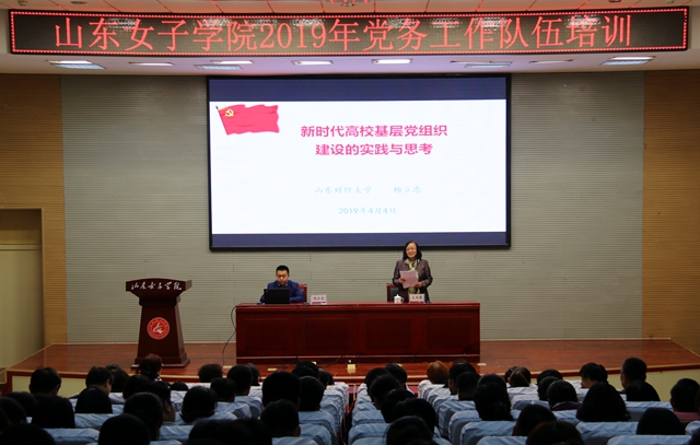 4月4日下午,学校邀请山东财经大学组织部副处级组织员兼学校党校办公室主任杨立忠同志作了关于基层党建工作的专题报告。学校党委副书记王淑霞主持会议,各党总支、党支部书记、副书记、委员以及专兼职组织员200余人参加了培训。