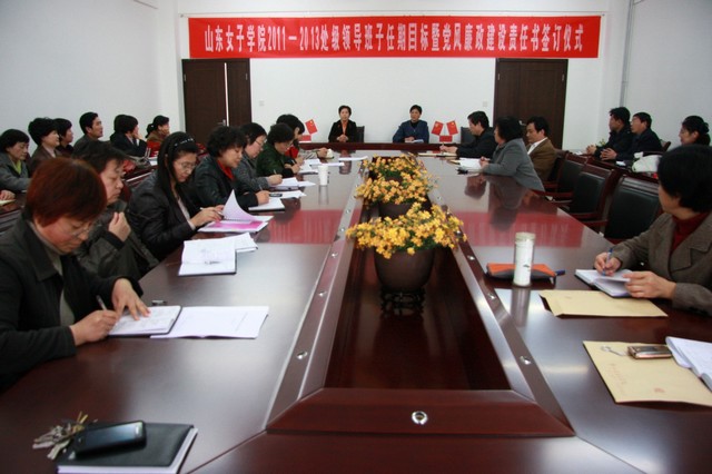 4月8日下午,我校2011-2013处级领导班子任期目标暨党风廉政建设责任书签订仪式在办公楼第四会议室隆重举行。学校领导孙秀丽、范素华、宿建沛、宋兆静、赵胜村、汪琦、贺兴利出席签订仪式,各部门、各单位主要负责人参加了签订仪式。签订仪式由党委书记孙秀丽主持。
