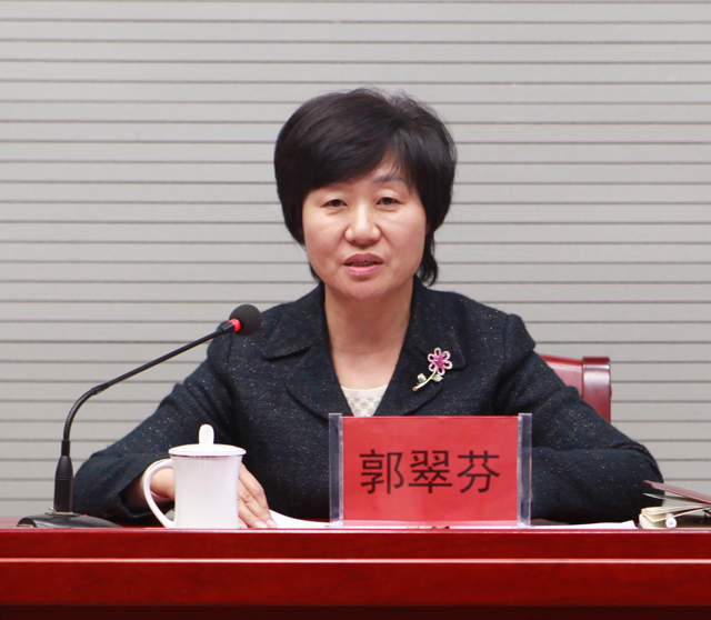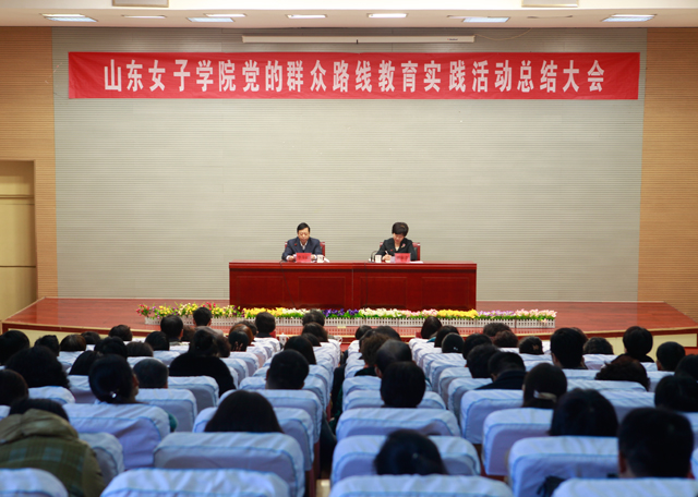 学校教育实践活动领导小组组长、党委书记郭翠芬作山东女子学院教育实践活动总结