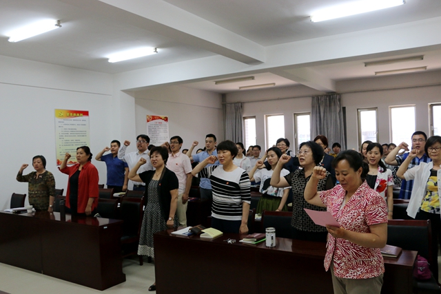 党课结束后,郭翠芬带领参加学习的全体党员面向党旗重温了入党誓词。