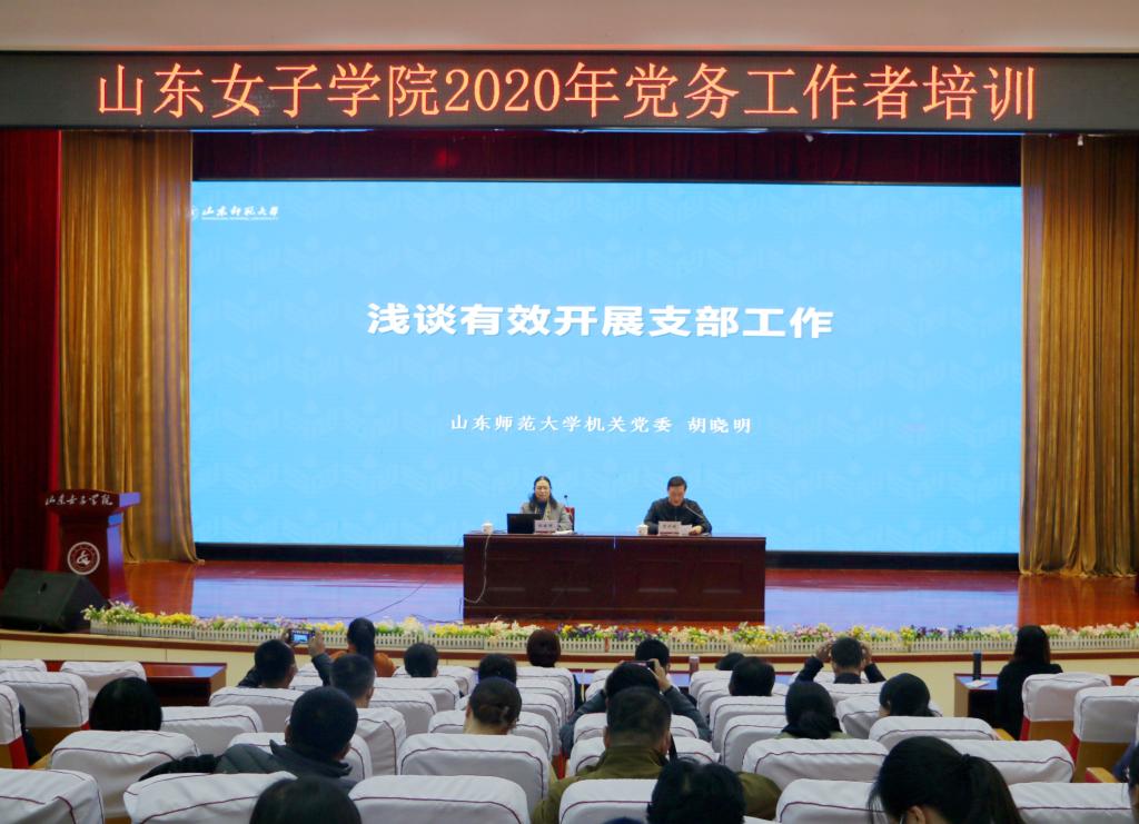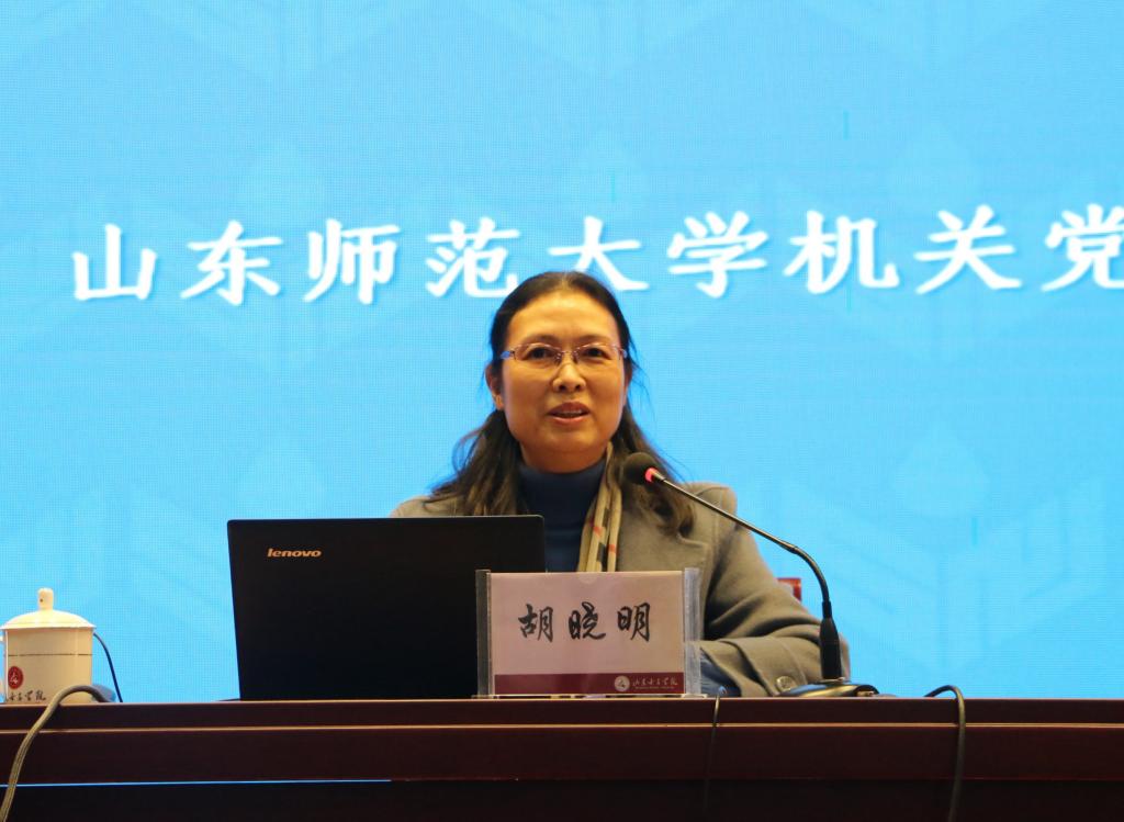 11月19日下午,学校邀请山东师范大学机关党委书记胡晓明同志作了关于支部建设的专题报告。副校长贺兴利主持会议,各党总支、党支部书记和委员以及专职组织员200余人参加了此次培训。