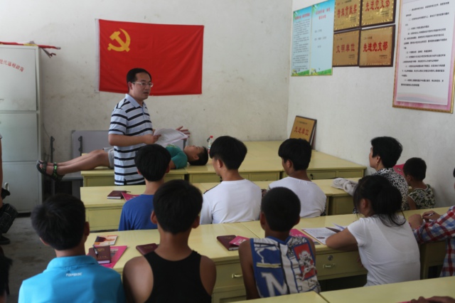 学校教师为张村街社区中小学生讲解安全急救常识