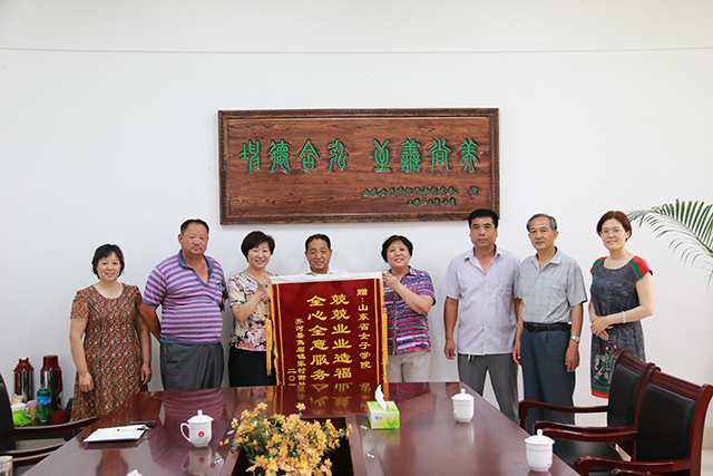 7月7日,学校召开座谈会,欢迎第一轮 “第一书记”的高荣海同志载誉归来。齐河县焦庙镇张村街社区的王守富、姜金东书记和王书立主任代表乡亲们为我校送来“兢兢业业造福百姓,全心全意服务基层”的锦旗,以表达对学校和“第一书记”的感谢。学校党委书记郭翠芬代表学校接受了锦旗并同他们座谈。