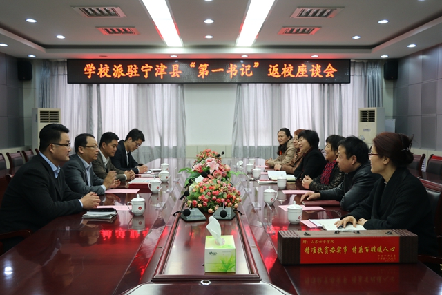 3月20日上午,学校派驻德州市宁津县杜集镇的3名第二轮第一书记杨洋、孙利华、赵贵阳圆满完成帮扶任务,载誉归来。宁津县委常委、副书记毕志国代表宁津县委、县政府送第一书记们返校工作。学校在办公楼第三会议室举行座谈会。党委书记郭翠芬主持会议并致辞,党委副书记宿建沛出席会议。学校组织部、资产处、旅游学院、信息学院相关负责人参加会议。