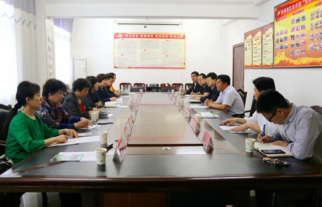 郭翠芬一行与定陶区政协主席张防、定陶区委副书记王铁军、定陶区陈集镇党委书记席云明、定陶区组织部相关负责人等党政领导同志就“第一书记”的工作情况进行座谈。王铁军对我校选派的“第一书记”给予了充分肯定,并表示将全力提供保障,支持“第一书记”履行职责。席云明简要介绍了陈集镇经济社会发展等方面的情况。郭翠芬对定陶区委、陈集镇党委及领导给予我校“第一书记”工作的大力支持表示感谢,她说,学校高度重视“第一书记”工作,多次召开会议进行专门研究和部署,并提出了明确的选拔条件和选拔程序,三位“第一书记”是从报名的70多名处科级干部中精心选拔出来的,希望他们不负学校党委的重托,与当地党委政府密切配合,把扶贫资金落实好、使用好,真正为群众办实事、解难题、促发展。她指出,学校党委下一步将统筹安排,整合资源,发挥优势,及时提供所需支持,最大化地满足工作需求,确保帮扶工作顺利开展,取得实效。会上,三位“第一书记”对近期开展的帮扶工作进行了汇报,并表示一定不辜负学校的重托,认真帮助驻村理路子、破难题、促发展,把实事办好,带领广大群众共谋富民强村之路,圆满完成“抓党建、促脱贫”的帮包任务。