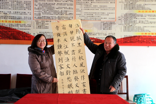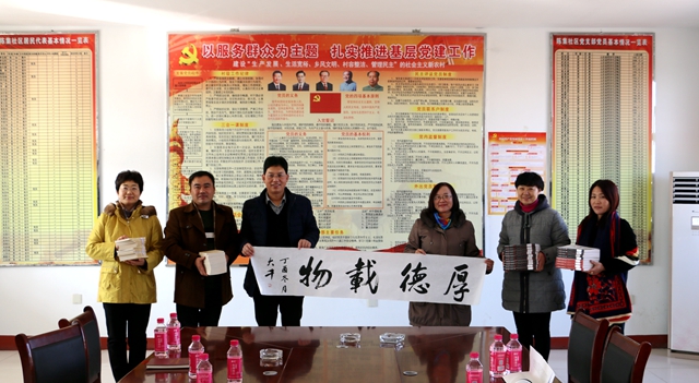 王淑霞一行先后深入到陈集社区、台楼村、保宁村,走访慰问了贫困家庭,并送去了米、面、棉衣等过节物品,把党的温暖和组织的关怀送到了群众中去。随后,王淑霞一行实地查看了村文化大院、群众阅览室、健身广场等活动场所,实地调研了金硕农业园冷库、狮克假日农场温室大棚两个“第一书记”产业扶贫项目工程,听取了当地村干部和村民对“第一书记”工作的反映。许多村民竖起了大拇指,动情地说,女子学院派来的“第一书记” 为帮扶村办了不少好事、实事,老百姓真正得到了实惠。活动中,学校还向陈集镇政府和三个村的文化站捐赠了图书和书法作品,其中《毛泽东选集》200余册,《论语的生活智慧》720余册,为百姓送去精神食粮。
