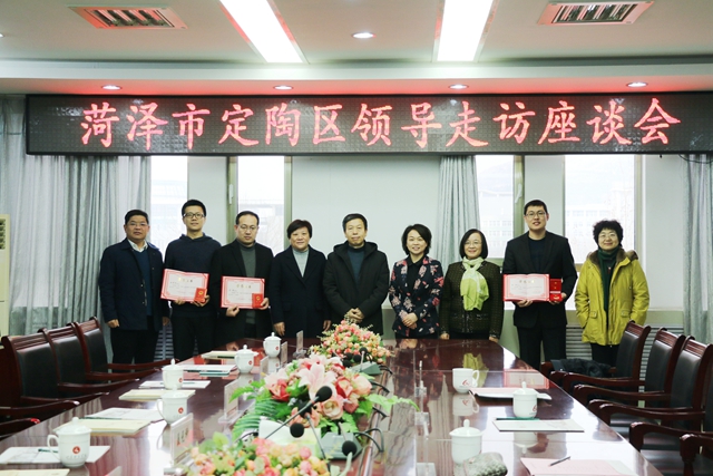 2月15日下午,菏泽市定陶区委副书记宁继红,区委常委、组织部部长孔素贞一行到学校进行走访。学校党委副书记、院长盛国军,党委副书记王淑霞接待了宁继红一行。学校党委院长办公室、党委组织部相关负责人及学校选派的三位“第一书记”参加了座谈会。
