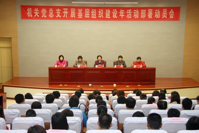 2012年4月20日下午2:00,机关党总支在图书馆一楼报告厅召开机关党总支开展基层组织建设年活动部署动员会。学校领导孙秀丽、宿建沛、汪琦出席会议,机关党总支全体党员参加了会议。会议由学校党委组织部部长主持。