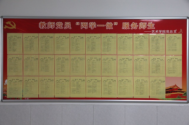 艺术学院党总支通过开展“两学一做”学习教育,既引导党员接受教育,有效解决个别党员理想信念模糊动摇、意识淡化、宗旨观念淡薄、精神不振、道德行为不端问题,又进一步教育党员坚定理想信念、提高党性觉悟,增强四个意识,坚定正确的政治方向,树立清风正气,严守政治纪律和政治规矩,强化宗旨观念,勇于担当作为。通过党员教师勇于亮牌承诺,服务师生成长成才,起好模范带头作用,带动全院师生为迎接教育部本科教学合格评估做出应有的积极贡献。